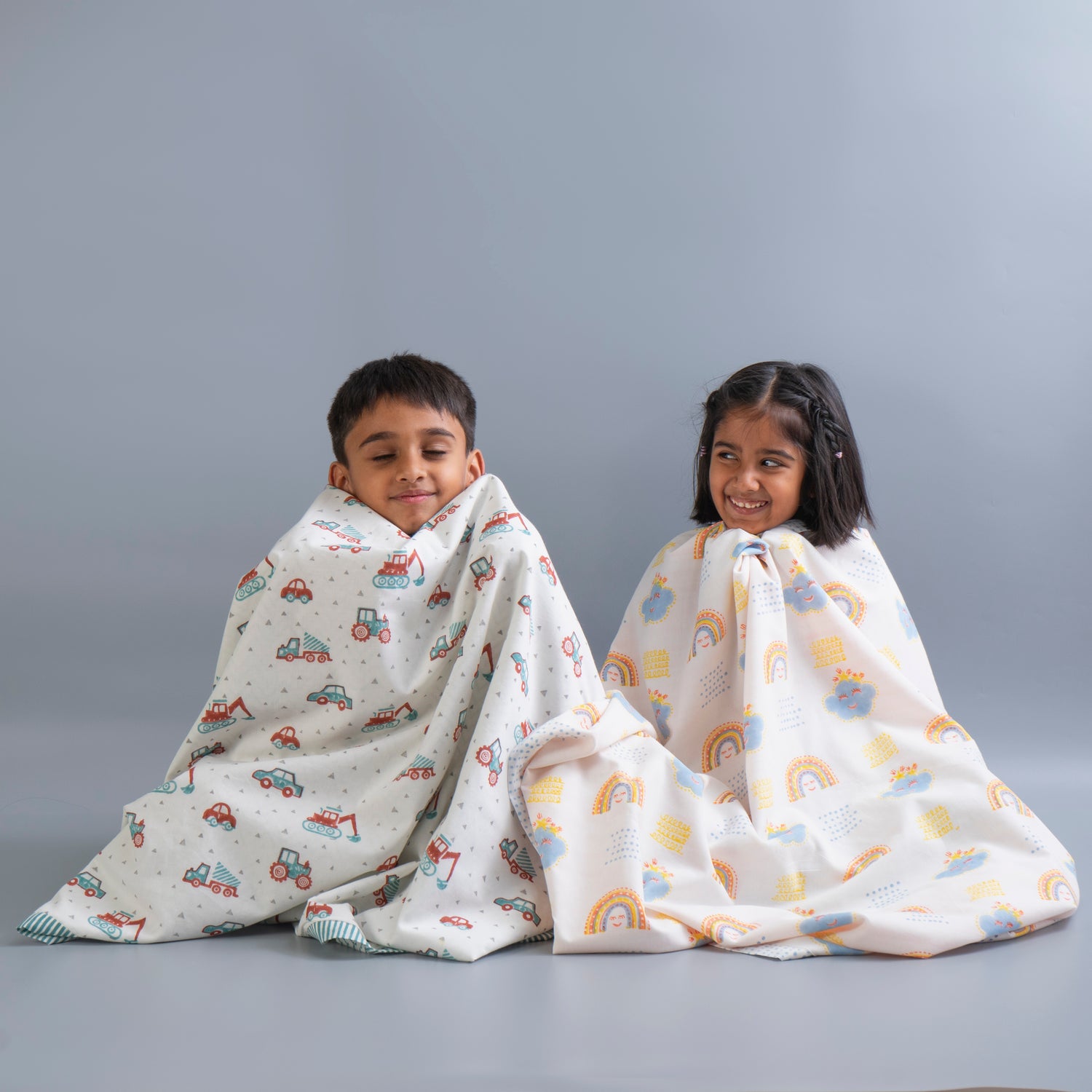 The vibrant patterns and colors naturally attract kids, making cotton muslin dohar an ideal addition to bedrooms. Use them as a stylish bedspread, a snuggly wrap during storytime, a cozy addition to a playtime picnic, or even as a decorative throw on a couch. So, whether it’s naptime, playtime, or bedtime, our cotton muslin dohar is a delightful choice that wraps your child in warmth, beauty, and tradition.